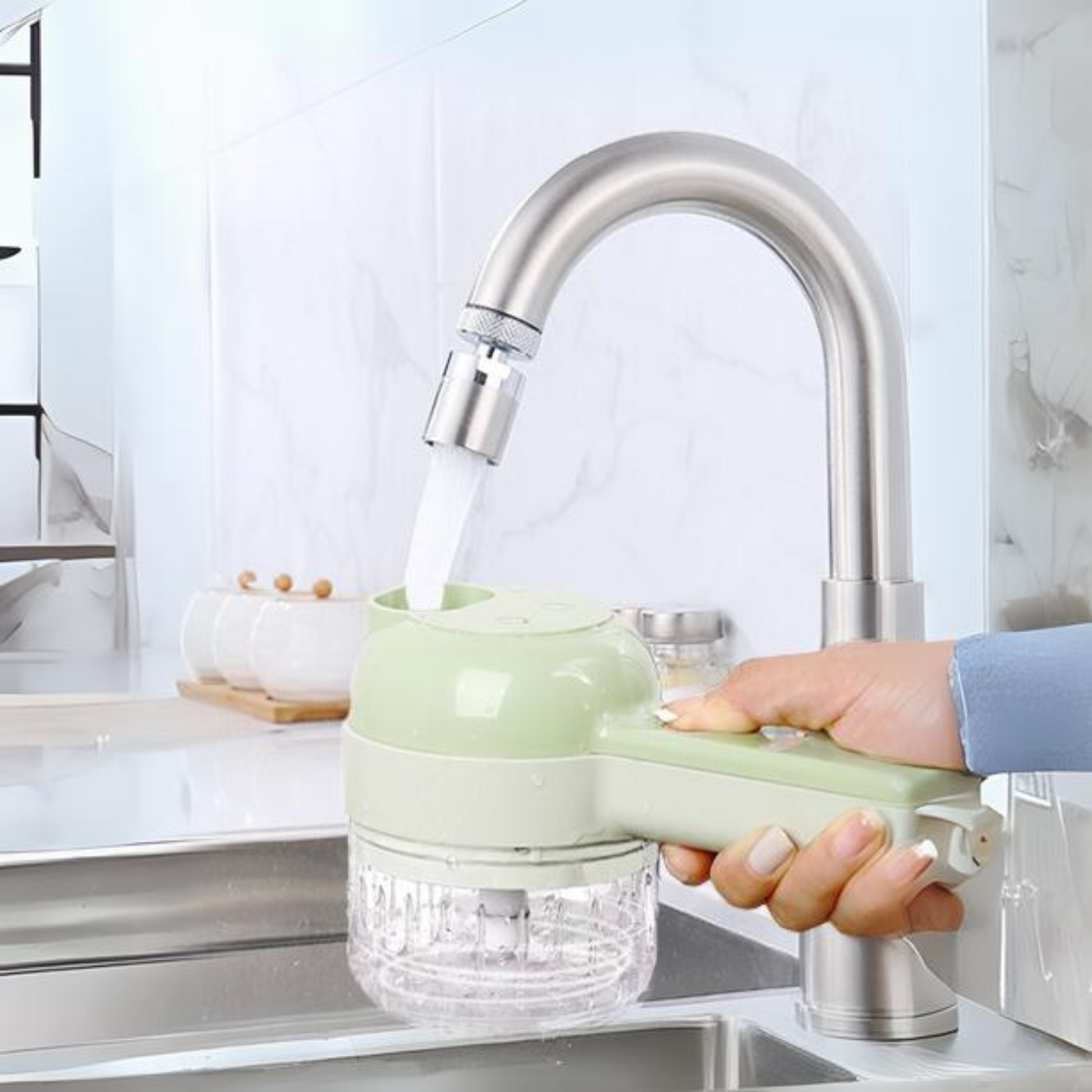 ✨ Juego de picadora eléctrica de verduras 4 en 1: el mini picador eléctrico multifunción de verduras contiene 5 funciones , adecuado para varios escenarios. Multiuso en una máquina, conveniente y rápido.
